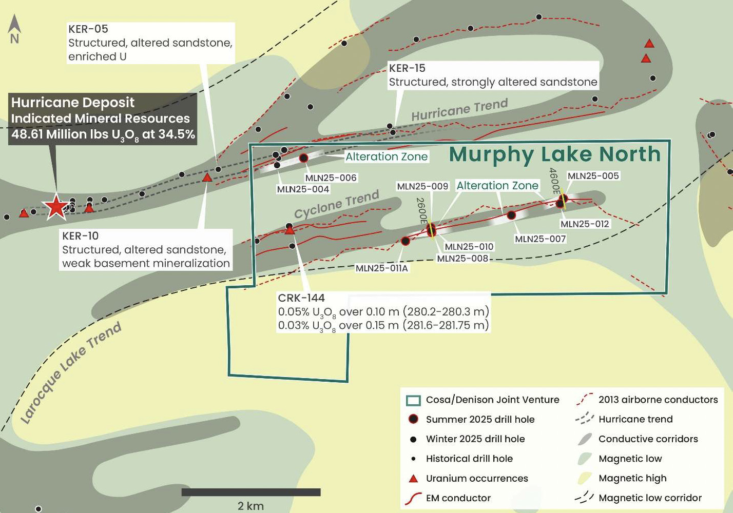 Andy Carmichael, Vice President of Exploration commented: “With multiple strongly anomalous historical drill holes on several trends at Darby and two kilometres of strong alteration with graphitic faulting at MLN to follow up, Cosa is entering the 2026 exploration season with the best inventory of exploration targets in the Company’s history. With DC resistivity surveying at MLN, we aim to augment that inventory with additional shallow targets on one of the most fertile trends in the eastern Athabasca Basin.”